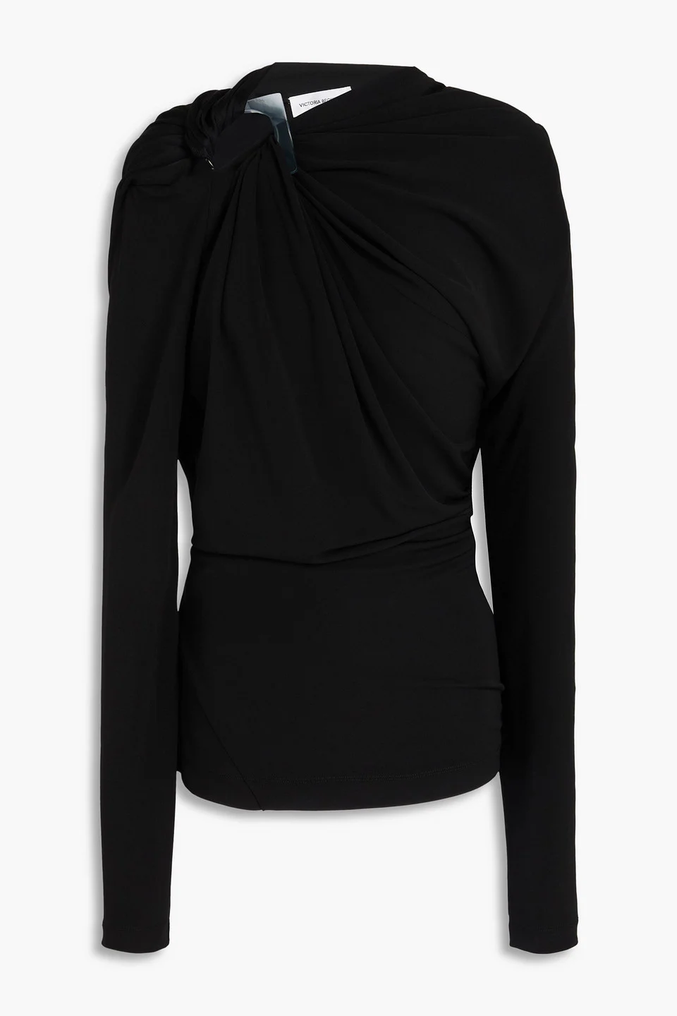 Top stretch-crepe satin-crepe embellished paneled draped concealed zip fastening along back mid-weight, stretchy fabric dry clean imported 100% Viscose Product Code 46376663163052362