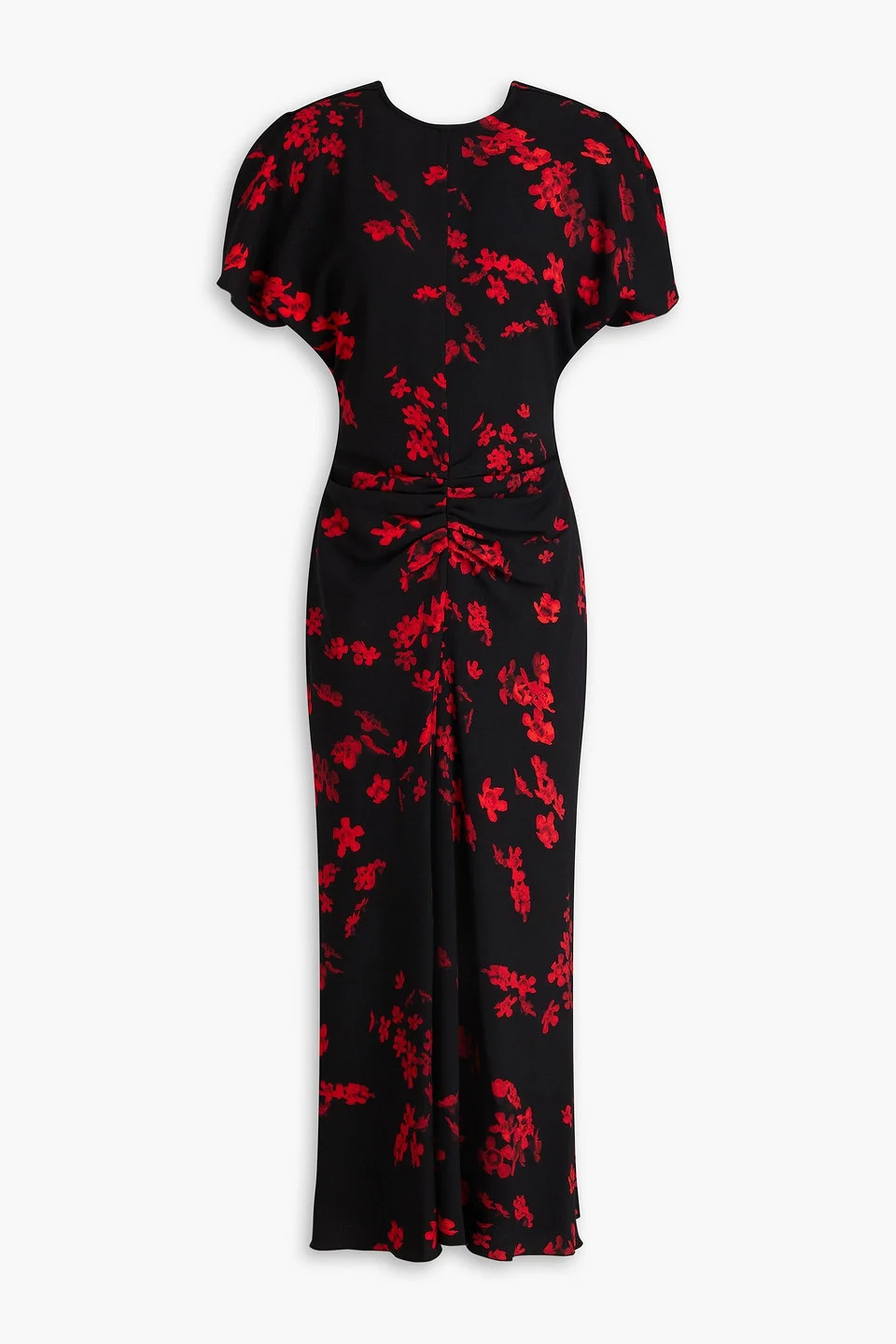 Gathered floral-print crepe midi dress