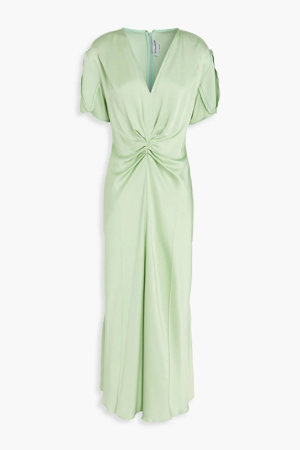 Gathered satin-crepe midi dress