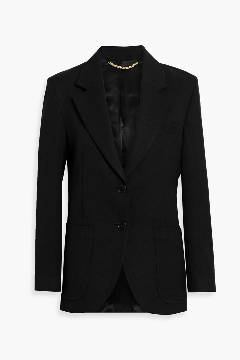 Blazer grain de poudre buttoned cuffs breast pocket front patch pockets button fastenings through front fully lined back vent mid-weight, non-stretchy fabric dry clean imported Your next wardrobe hero is found with this Victoria Beckham blazer — the missing piece your closet has been waiting for. Crafted in wool, it shows expert tailoring in its neat topstitching, buttoned cuffs and structured shape. Bring it to presentations or important meetings; cinch the waist with a leather belt for extra definition. 55% Polyester 45% Virgin Wool Product Code 46376663163073090