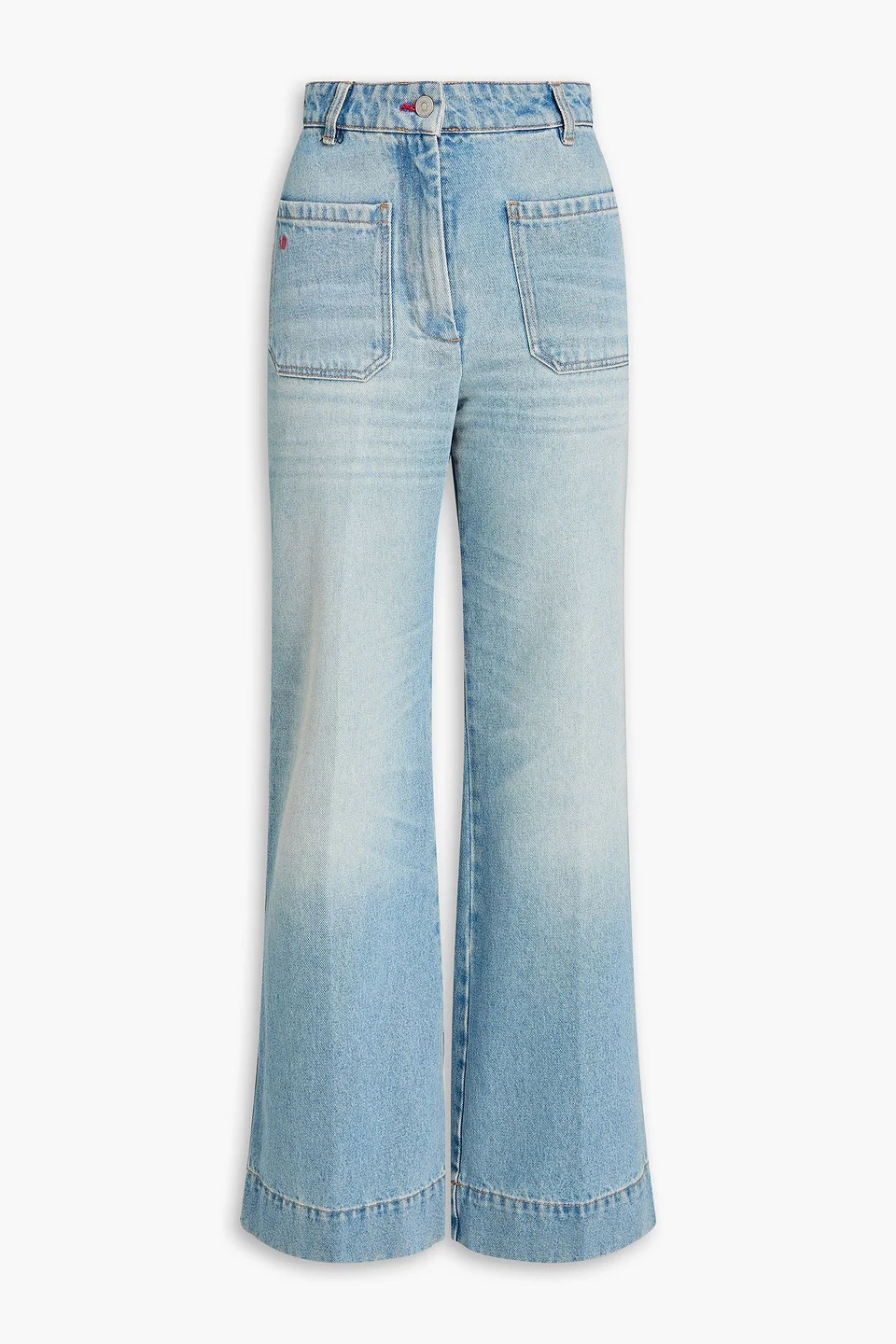 Flared jeans denim embroidered logo belt loops high-rise cut front patch pockets back patch pockets button and concealed zip fastening at front mid-weight, non-stretchy fabric machine wash or dry clean made in italy Victoria Beckham’s high-rise flared jeans make getting dressed easy. The mid-weight denim shapes the waist and hips for expert tailoring and is finished with an embroidered logo. Great for weekend trips or coffee runs—style with a relaxed blouse and statement bag. 100% Cotton Product Code 46376663163055009