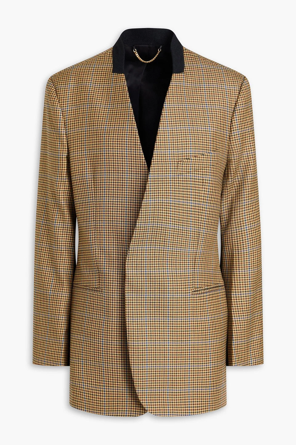 Blazer houndstooth wool-tweed grain de poudre paneled shoulder pads breast pocket front welt pockets concealed button fastening at front fully lined side slits mid-weight, non-stretchy fabric dry clean made in uk 100% Wool Product Code 46376663162925535
