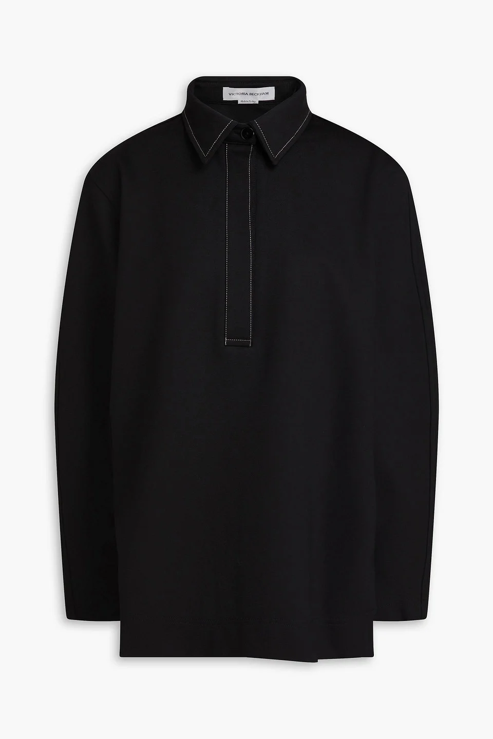 Polo shirt jersey topstitching partially concealed button fastenings along front mid-weight, stretchy fabric machine wash or dry clean imported 67% Viscose 28% Polyester 5% Elastane Product Code 46376663162926600