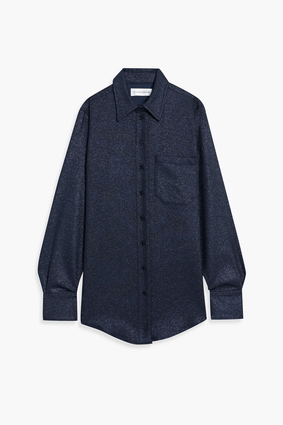 Shirt metallic jersey buttoned cuffs breast pocket button fastenings through front mid-weight, non-stretchy fabric dry clean imported 57% Viscose 30% Polyester 10% Wool 2% Polyamide 1% Elastane Product Code 46376663163101683