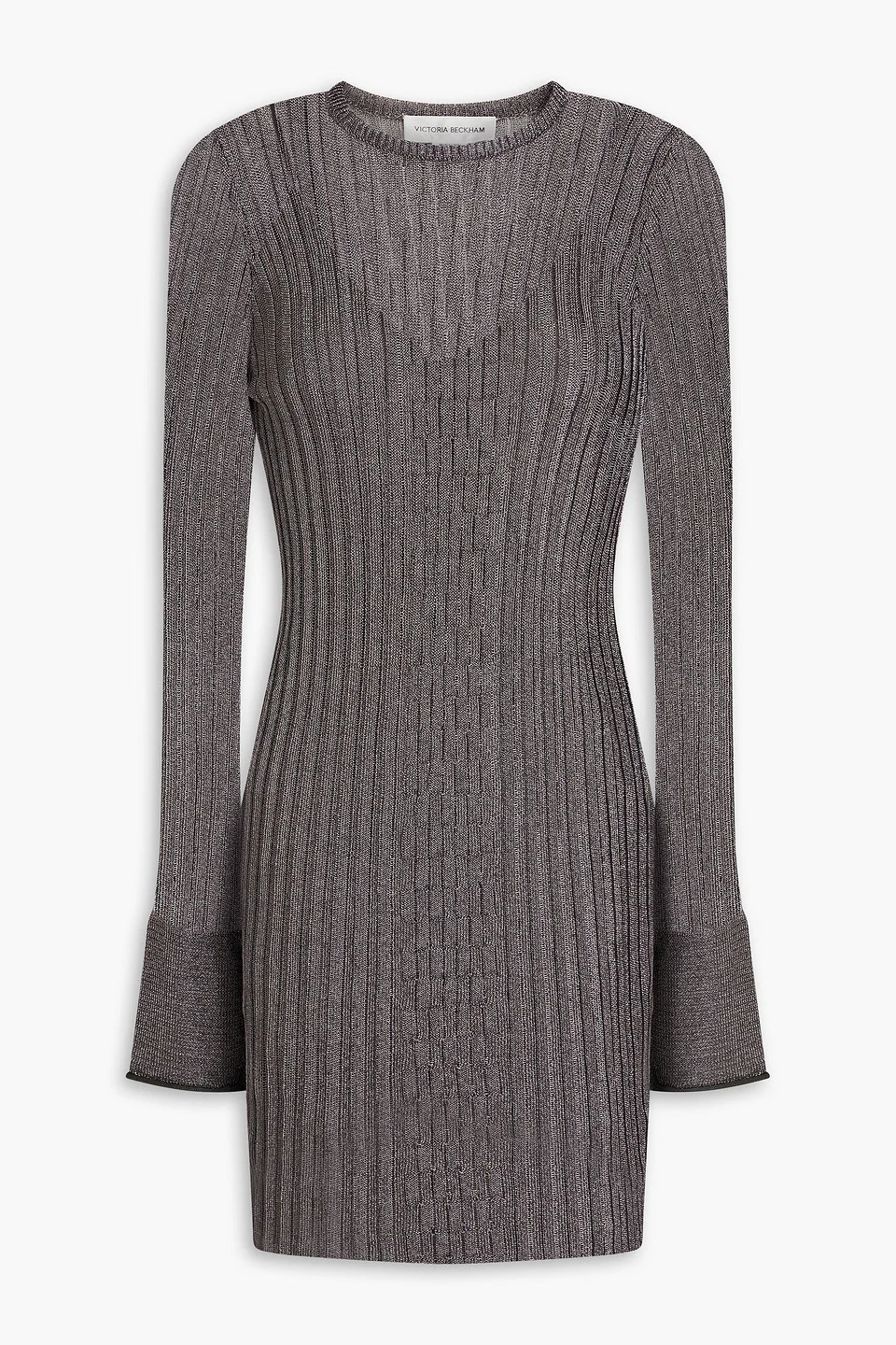 Metallic ribbed crochet-knit mini dress