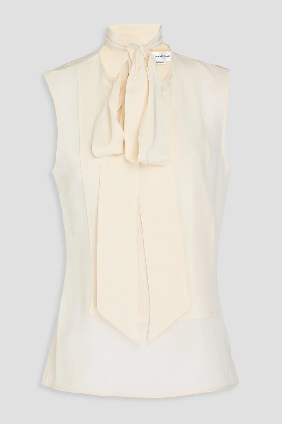 Top silk crepe de chine pussy-bow pintucked hook-fastening keyhole at back lightweight, non-stretchy fabric dry clean imported 100% Silk Product Code 46376663162866486