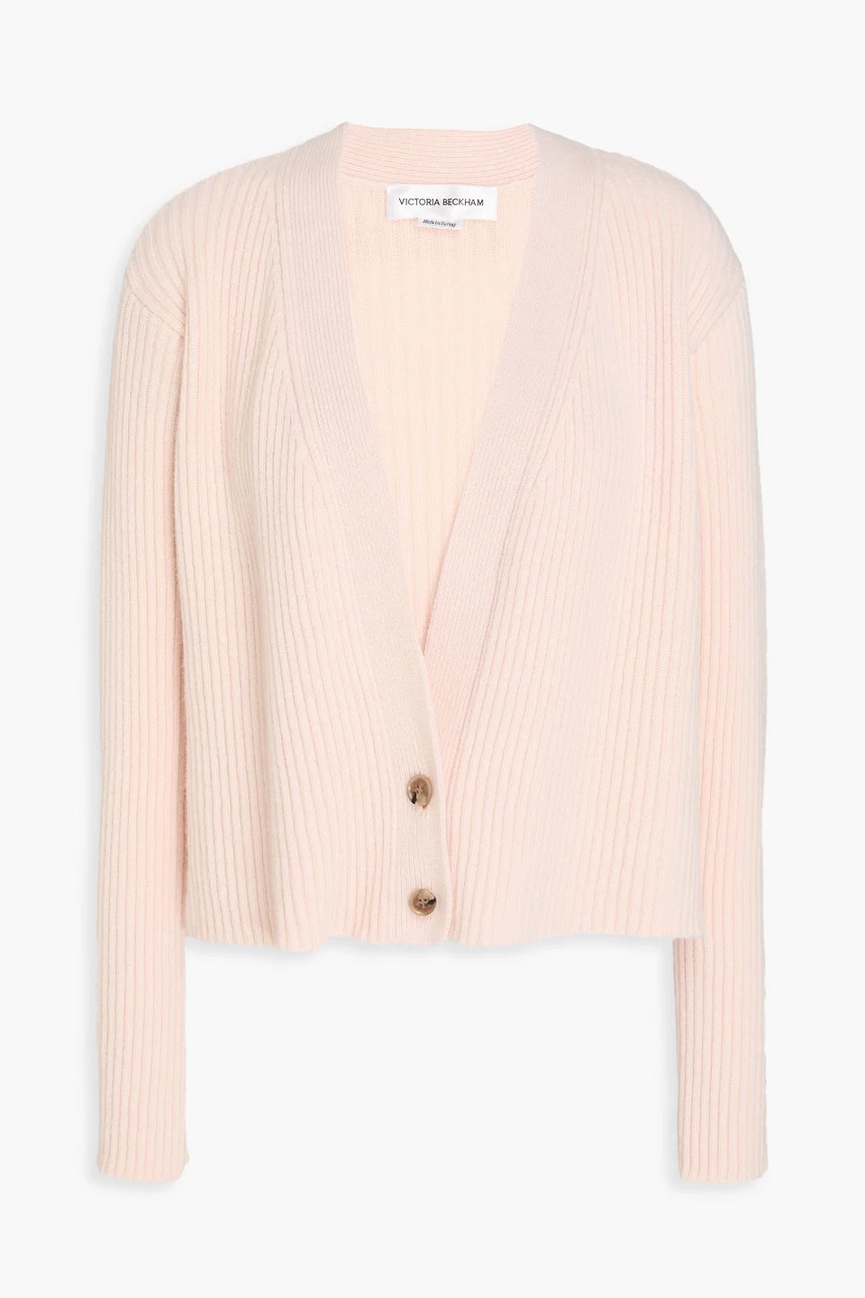 Cardigan wool and cashmere-blend ribbed embroidered logo side splits button fastenings through front mid-weight knit dry clean imported 70% Wool 30% Cashmere Product Code 46376663163055064