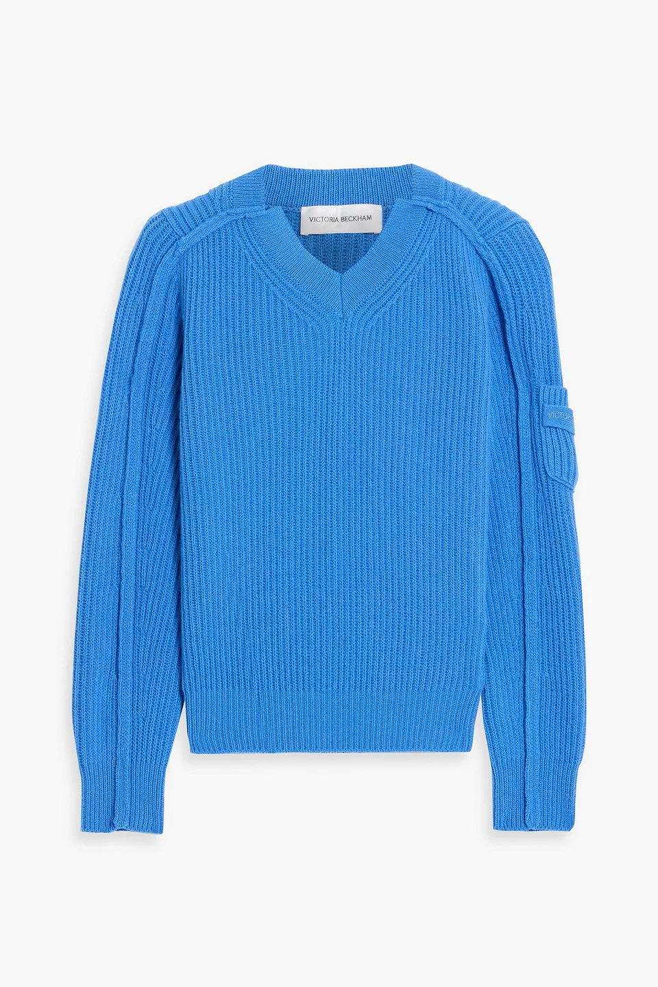 Sweater wool and cashmere-blend ribbed sleeve pocket slips on mid-weight knit dry clean imported There’s so much to love about Victoria Beckham’s v-neck knit. The ribbed finish and soft cashmere-wool mix creates a supple and flattering silhouette with a subtle sleeve pocket detail. Slip into it for coffee dates and wear with wide-leg denim. 70% Wool 30% Cashmere Product Code 46376663163073091
