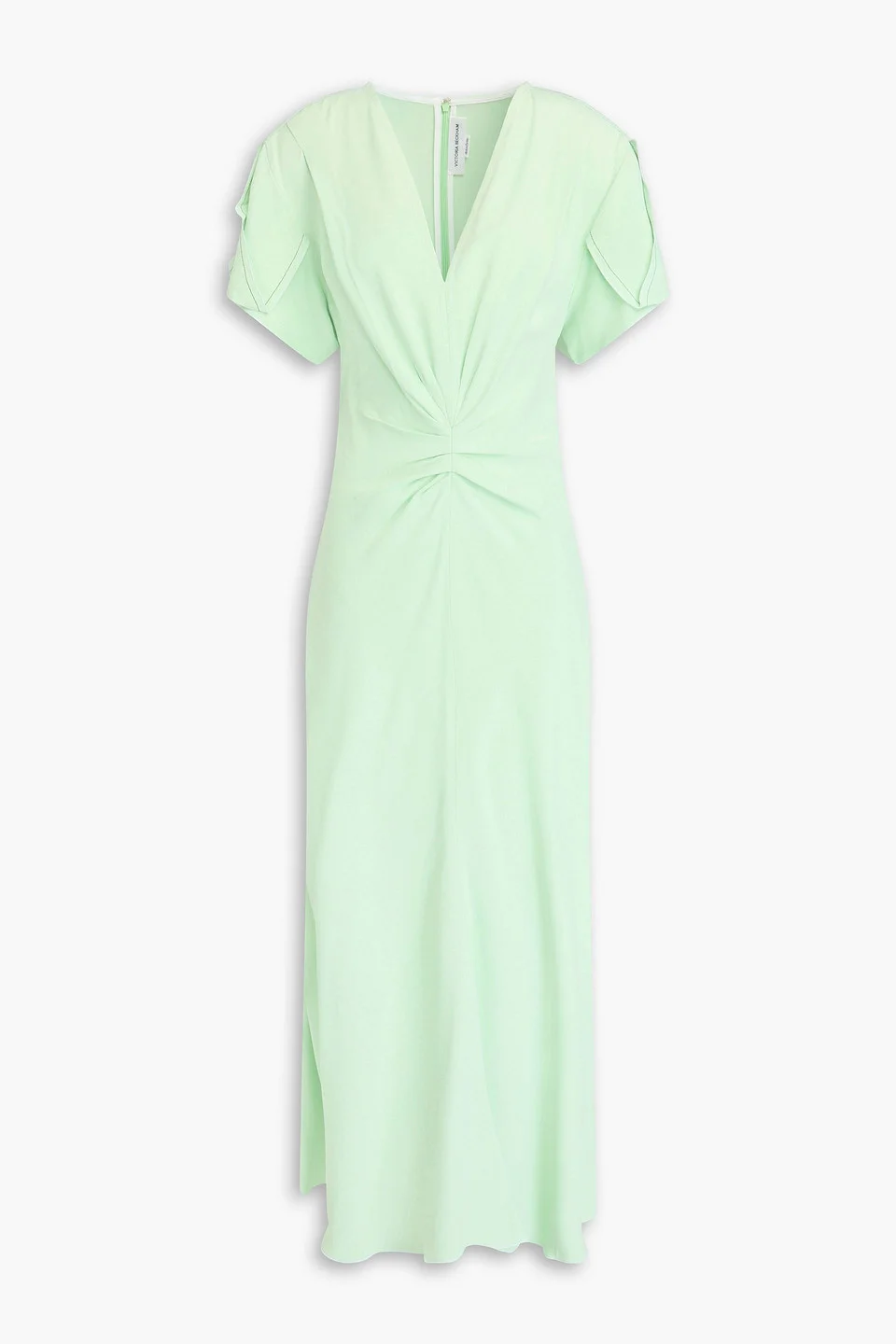 Dress crepe ruched asymmetric hem concealed hook and zip fastening at back mid-weight, non-stretchy fabric dry clean imported 100% Viscose Product Code 46376663162866590