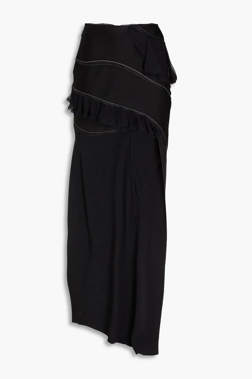 Asymmetric Ruffled Chiffon-trimmed Crepe De Chine Maxi Skirt