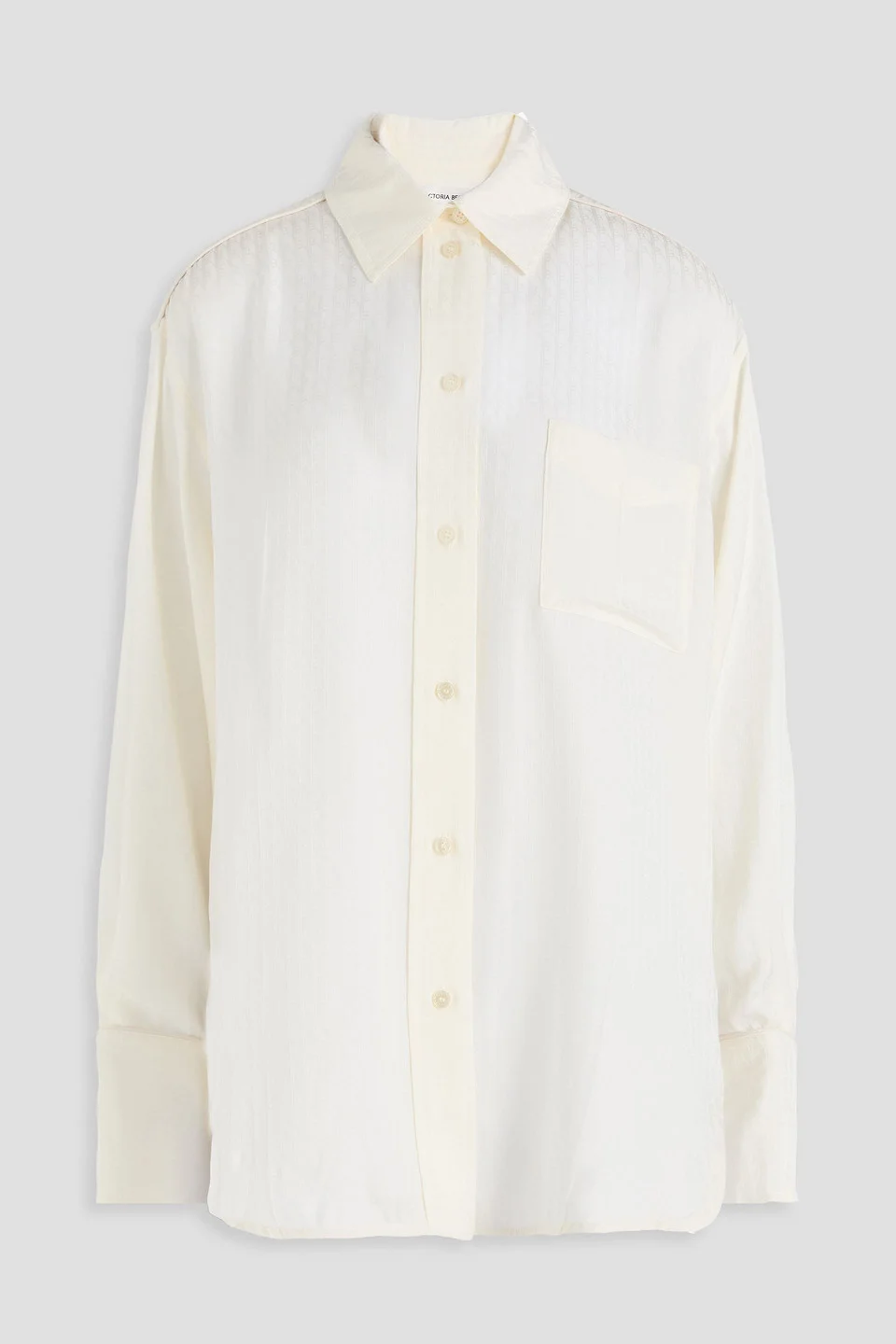 Shirt satin-jacquard buttoned cuffs breast pocket button fastenings through front mid-weight, non-stretchy fabric dry clean imported 65% Viscose 35% Modal Product Code 1647597338669866