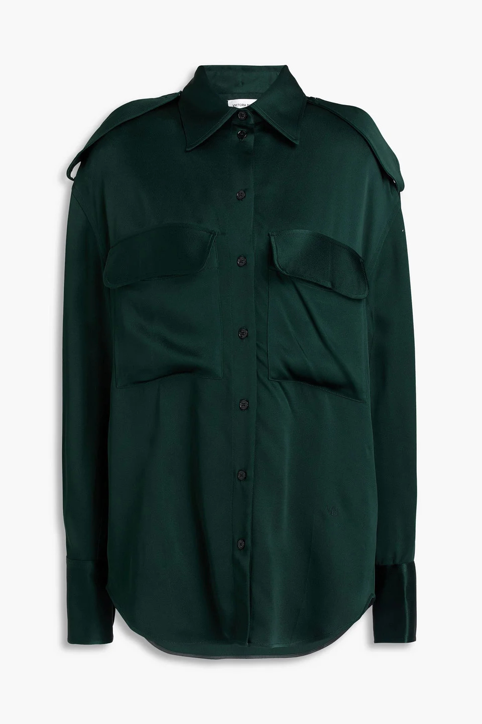 Shirt satin embroidered logo buttoned epaulettes buttoned cuffs breast pockets button fastenings through front mid-weight, non-stretchy fabric dry clean imported 71% Acetate 29% Viscose Product Code 46376663162990298