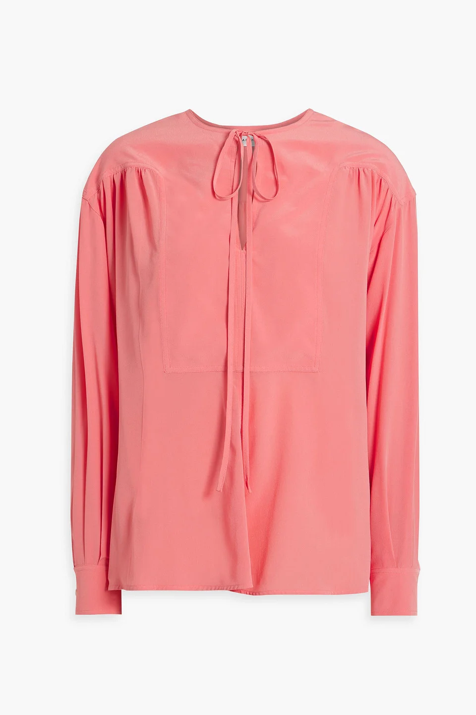 Blouse silk crepe de chine buttoned cuffs side slits tie-fastening keyhole at front non-stretchy fabric mid-weight fabric dry clean imported 100% Silk Product Code 1647597337271238