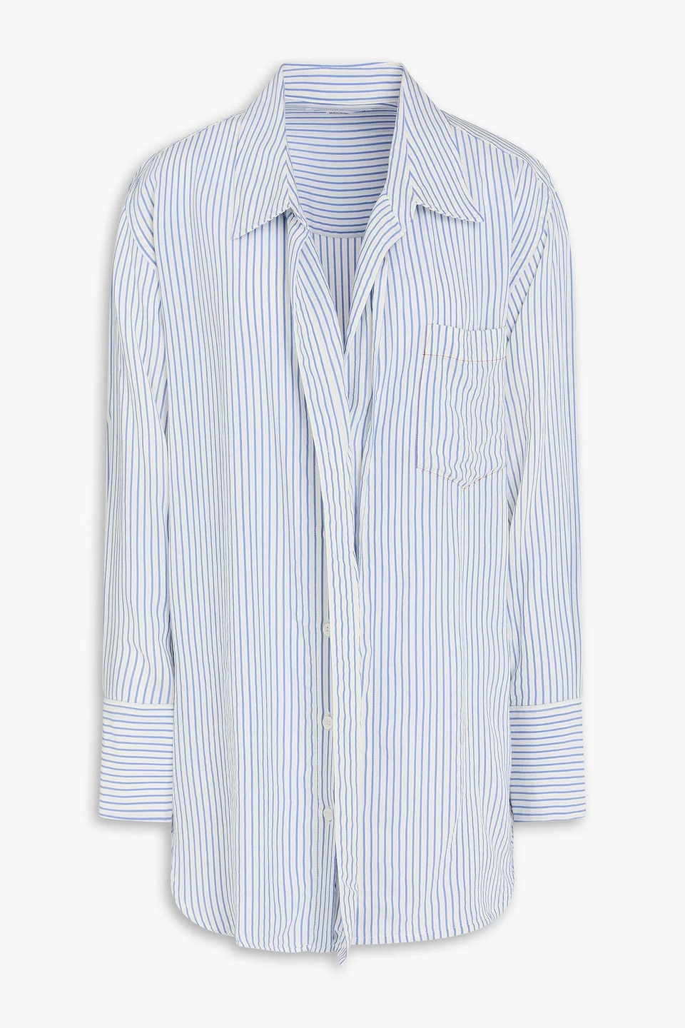 Shirt striped woven buttoned cuffs breast pocket side slits button fastenings through front lightweight, non-stretchy fabric dry clean imported Victoria Beckham infuses chic twists on wardrobe classics and this shirt is the perfect example. The woven fabric features vertical striping for a timeless touch while the adjustable button closure offers versatility and an unexpected take. Slip it on with statement trousers and a clutch for work lunches or weekends. 69% Viscose 31% Silk Product Code 46376663163055291