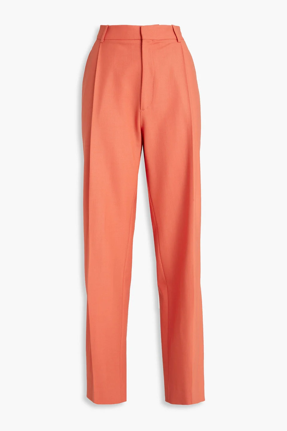 Wide-leg pants twill pleated two front slant pockets two back welt pockets belt loops high-rise cut concealed hook, button and zip fastening at front dry clean imported Need new power pants? These wide-legs from Victoria Beckham are made from a soft blend of virgin wool and twill, offering a flattering high-rise cut. Wear them with a fitted top and statement heels for a chic look. 53% Polyester 43% Virgin Wool 4% Elastane Product Code 1647597359146773