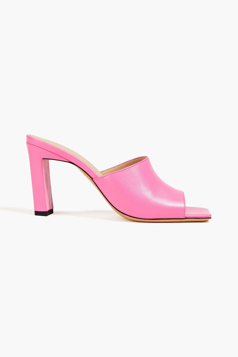 Mules leather open square toe slip on leather sole designer color: sugar imported Exclusive to THE OUTNET, Wandler’s ‘Nana’ mules have been exquisitely crafted from smooth, upcycled lambskin in a vibrant pink colorway the label calls ‘Sugar.’ Elevated on a 90mm illusion block heel, they slope to a refined square toe that’s perfect for showing off a fresh pedicure. Wear them with tailoring and flowy dresses alike. 100% Lambskin Product Code 1647597344848896