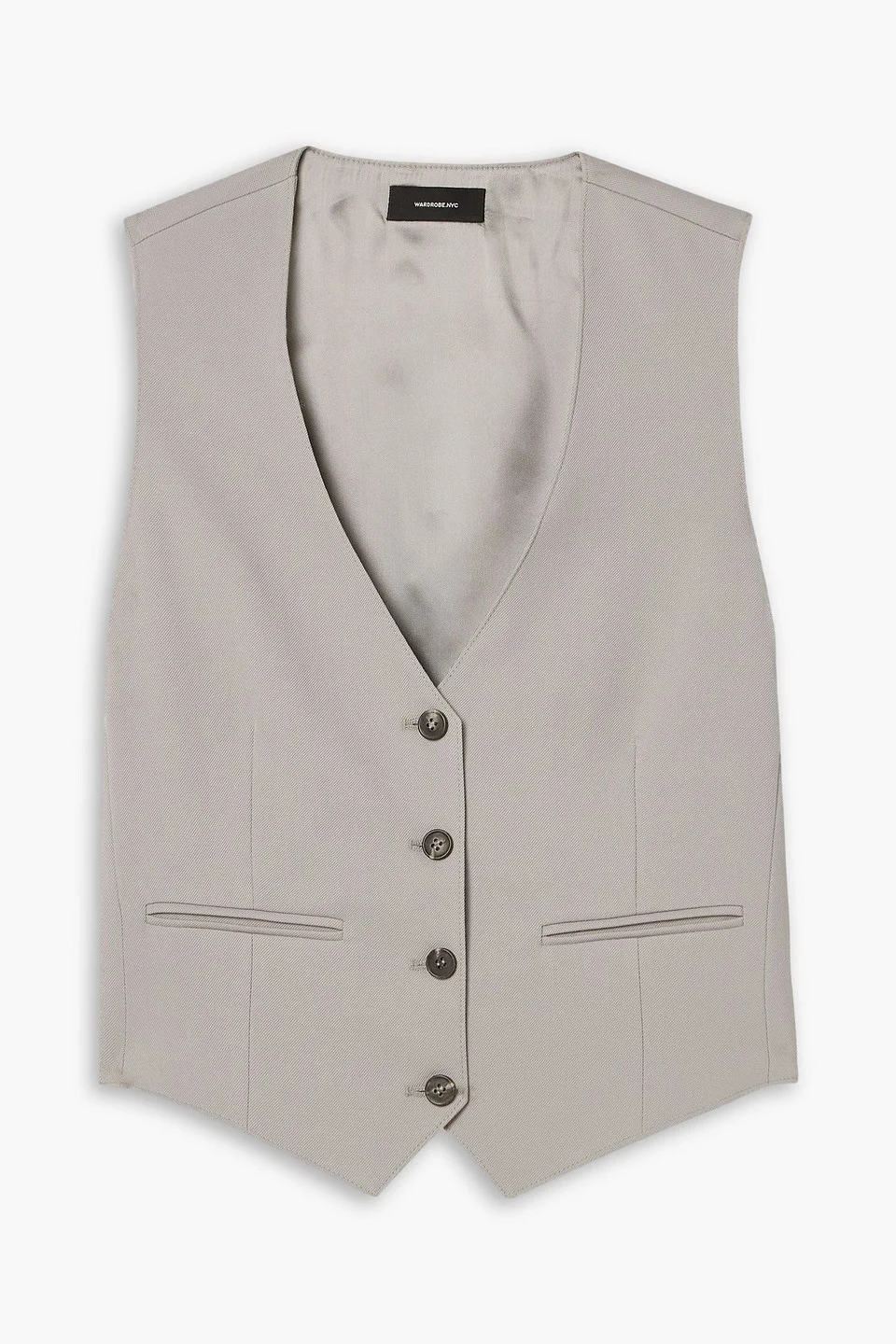 Vest grain de poudre wool cropped front welt pockets button fastenings through front fully lined mid-weight, non-stretchy fabric dry clean imported 100% Virgin Wool Product Code 1647597332837872