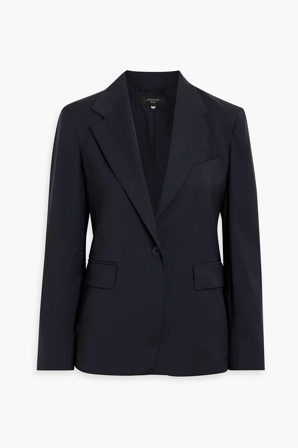 Blazer wool-crepe shoulder pads buttoned cuffs breast pocket front flap pockets button fastening at front fully lined back vent mid-weight, non-stretchy fabric dry clean imported 100% Virgin Wool Product Code 46376663163034318