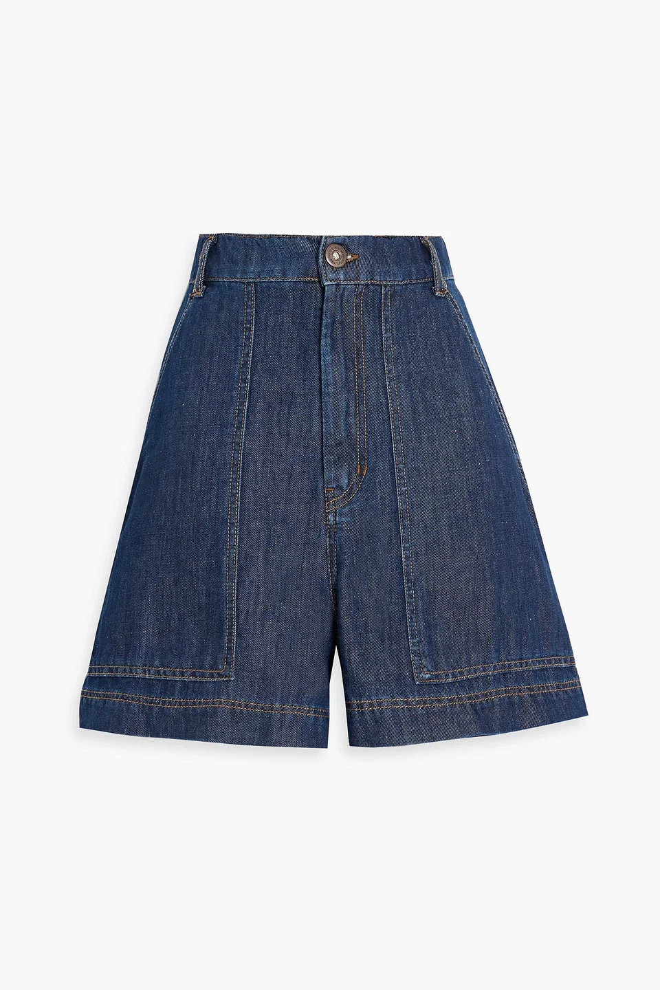 Shorts denim belt loops high-rise cut button and concealed zip fastening at back mid-weight, non-stretchy fabric dry clean imported 58% Cotton 42% Linen Product Code 46376663163124266