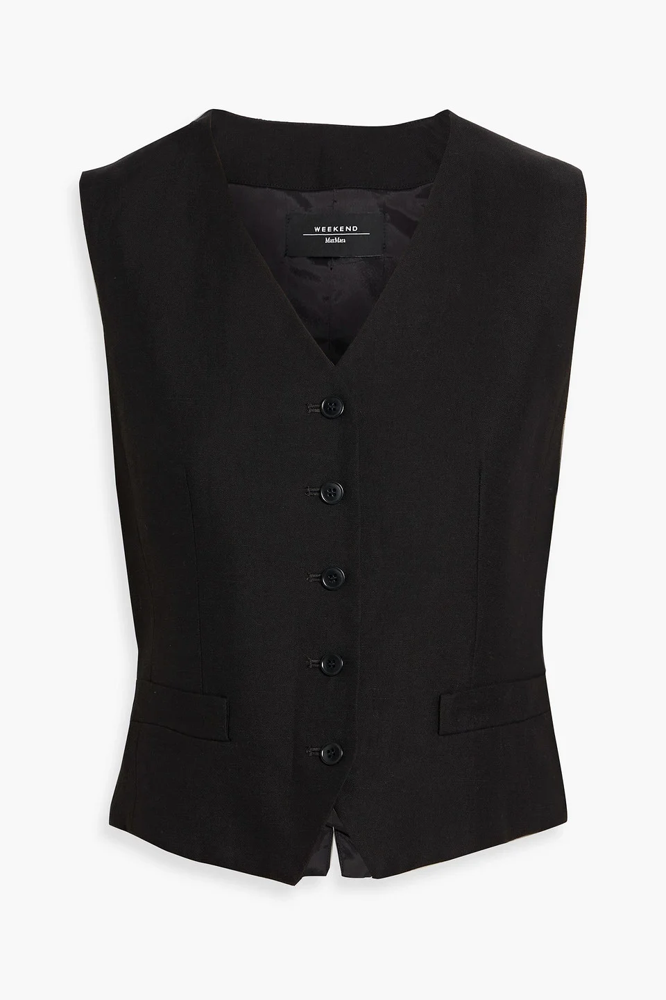 Vest twill faux pockets button fastenings through front fully lined mid-weight, non-stretchy fabric dry clean imported 69% Viscose 31% Linen Product Code 46376663163124215