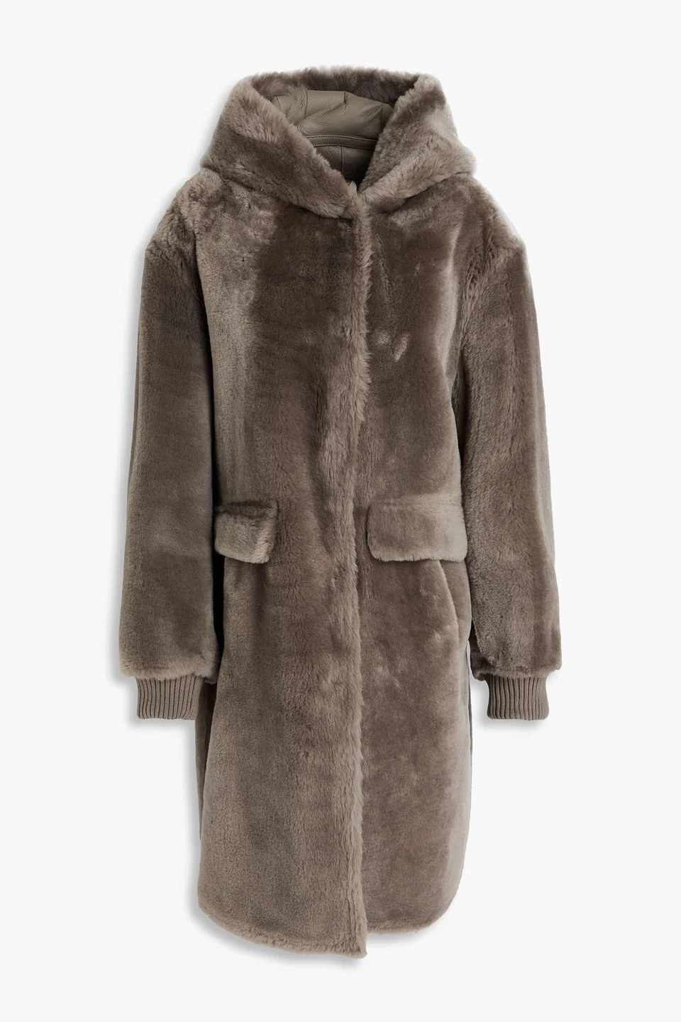 Coat shearling knitted trims hooded front slit pockets concealed snap fastenings through front thick, non-stretchy shearling specialist clean made in france 100% Lambskin Product Code 46376663162950007