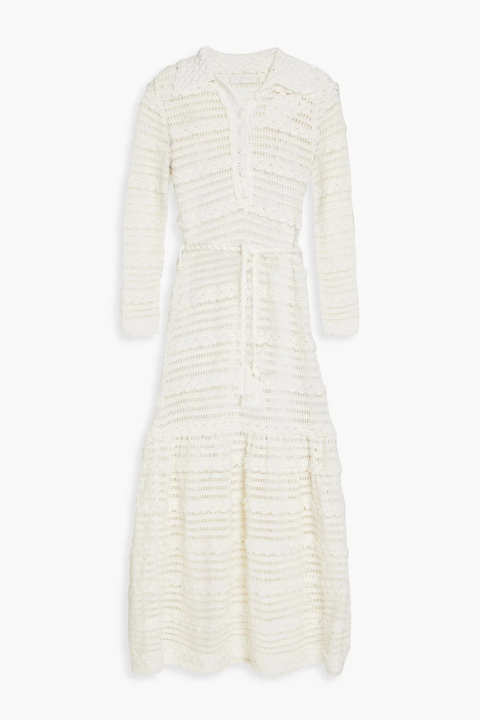 Belted crocheted cotton midi dress