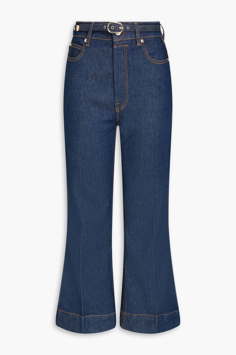 Kick-flare jeans denim detachable belt high-rise cut five pockets button and concealed zip fastenings at front mid-weight, slightly stretchy fabric dry clean imported Looking for a really great pair of jeans? Zimmermann's kick-flares have a stylish high-rise cut and a coordinating belt, you can swap it for one of your own if you choose. Just add a flirty top and you're ready for a night out. 82% Cotton 17% Lyocell 1% Elastane Product Code 46376663162931149