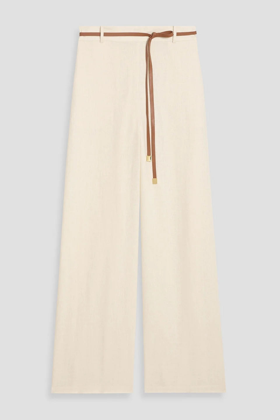 Belted linen wide-leg pants
