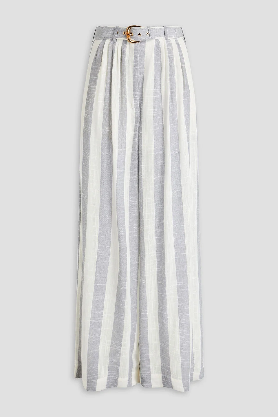Wide-leg pants striped gauze detachable belt belt loops high-rise cut mid-weight, non-stretchy fabric dry clean imported Zimmmermann’s wide-leg pants have an easy-breezy feel all while looking ultra-polished. They’re cut from striped gauze with a coordinating belt at the high-rise waist. Pair with the matching top and sandals. 80% Viscose 20% Linen Product Code 1647597355763804