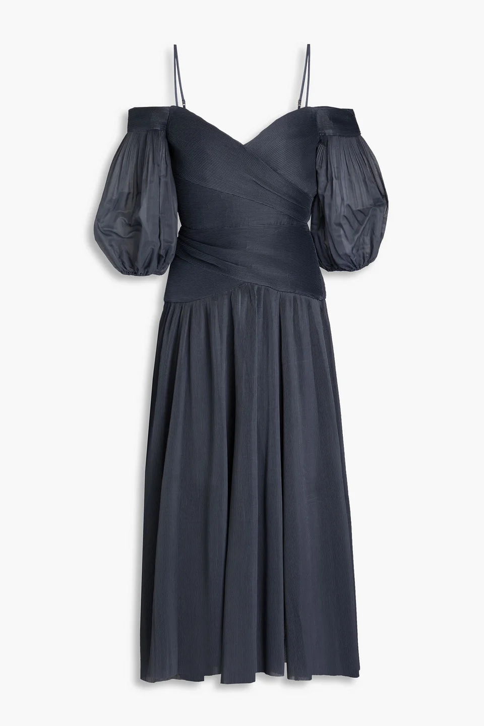 Cold-shoulder plissé-organza midi dress