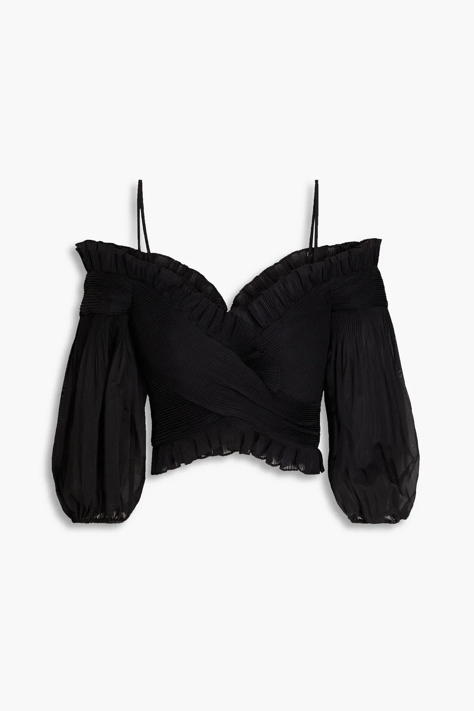 Top organza plisse ruffled trims zip fastening through back mid-weight, non-stretchy fabric dry clean imported 100% Polyester Product Code 1647597319902628