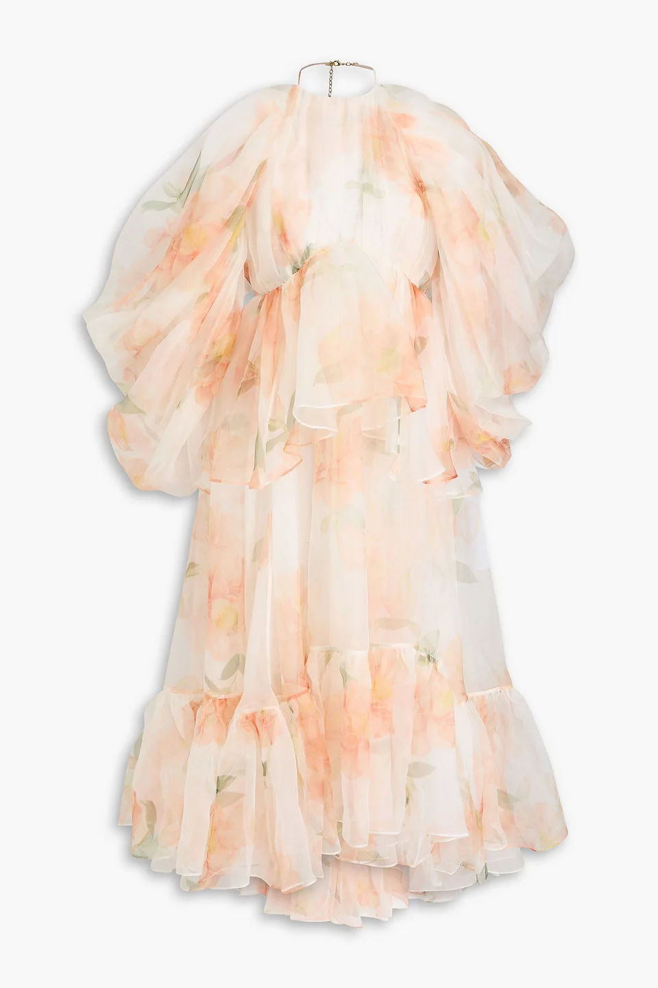 Cold-shoulder dress floral-print silk-organza ruffled open back asymmetric hem hook fastening at neck concealed zip fastening along back lightweight, non-stretchy fabric dry clean imported Zimmermann's floaty dress will be admired from every angle. It's made from frothy silk-organza with muted florals and turns to reveal an open back that will make jaws drop. When it comes to styling, less is definitely more. 100% Silk Product Code 46376663162890677