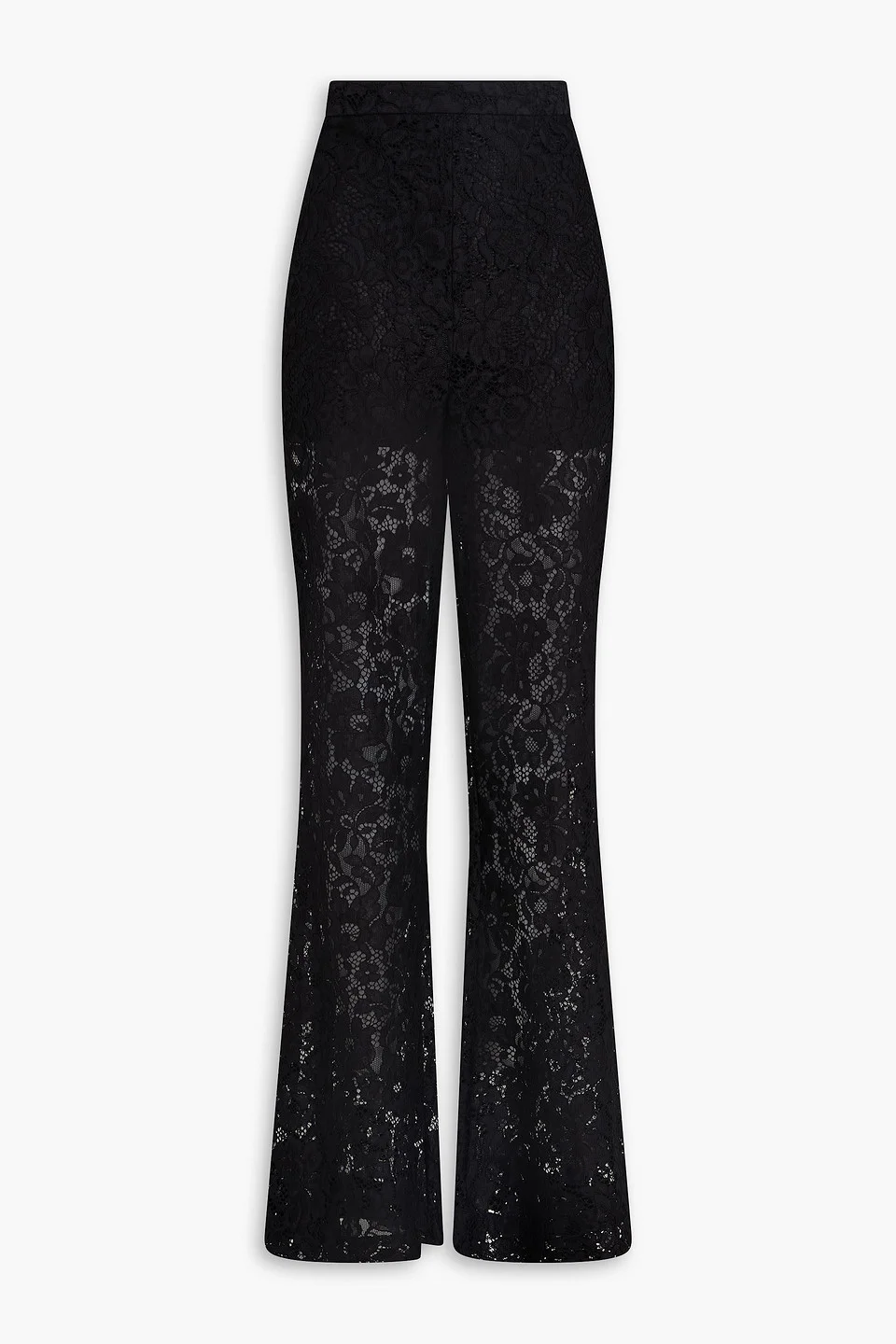 Flared pants corded lace high-rise cut partially lined concealed zip fastening along back mid-weight, non-stretchy fabric dry clean imported Looking for a really great addition to your wardrobe? Zimmermann's flared pants are made from corded lace that's partially lined so they show flashes of skin. Wear them with a fitted top and heels for a night out. 80% Polyamide 20% Cotton Product Code 46376663162930800