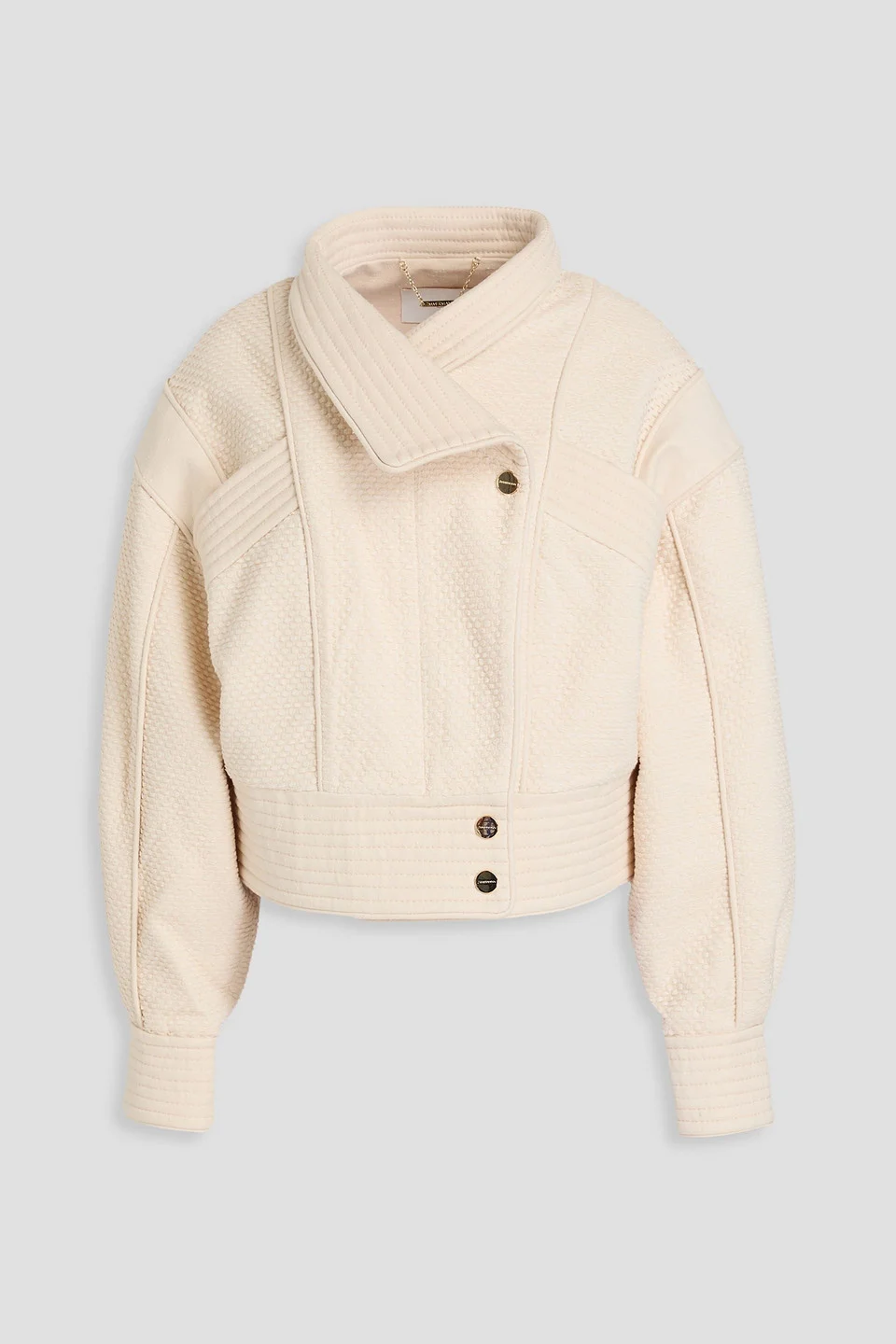 Jacket jacquard cotton-blend twill trims snap-fastening cuffs two front slit pockets snap and concealed zip fastenings through front lace-up back fully lined mid-weight, non-stretchy fabric dry clean imported Zimmermann's jacket looks great with denim, though we like it just as much with one of the label's flowing maxi skirts. Made from cotton-blend jacquard, it features a lace-up back and on-trend funnel neck. 85% Cotton 14% Polyamide 1% Elastane Product Code 1647597342397273