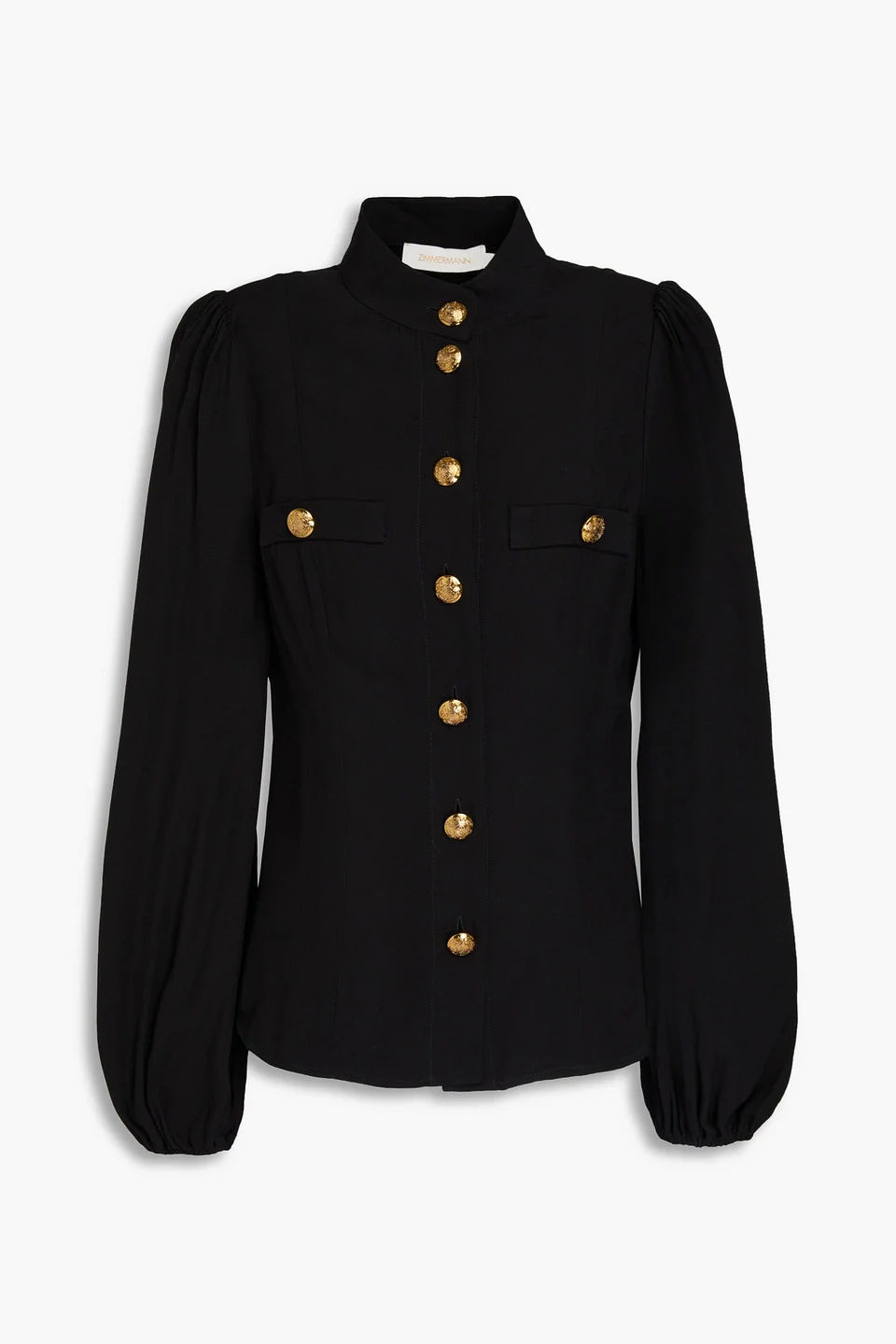 Shirt crepe elasticated cuffs faux pockets button fastenings through front mid-weight, non-stretchy fabric dry clean imported 100% Viscose Product Code 1647597359470106