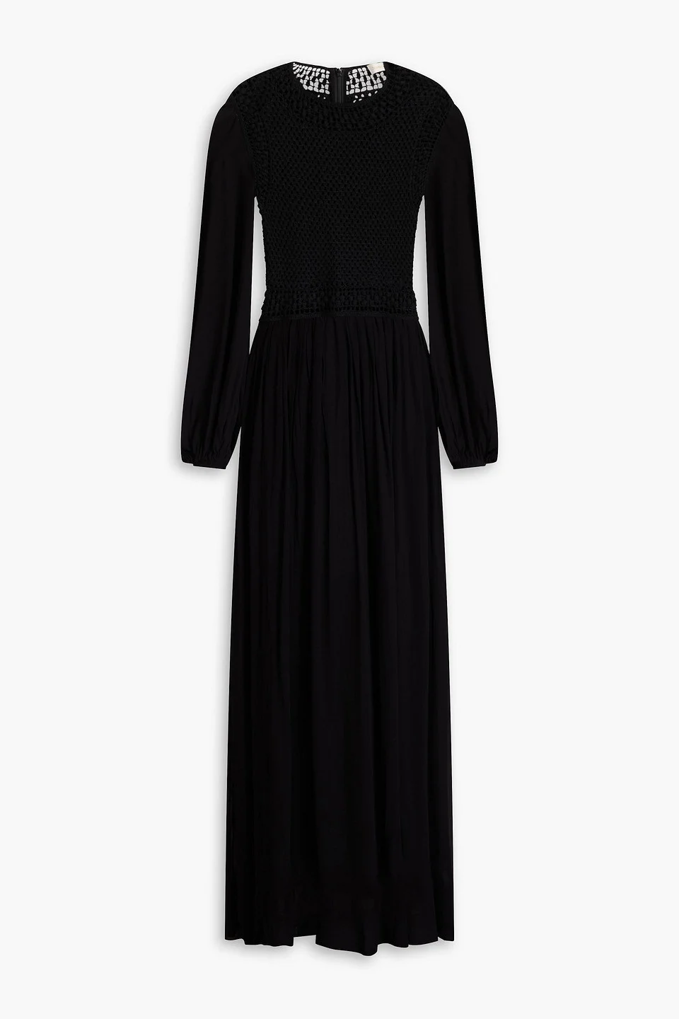 Dress crochet chiffon paneled concealed zip fastening along back lightweight, non-stretchy sheer fabric dry clean imported Looking for a really great dress? Zimmermann's maxi is made from lightweight chiffon with crochet panels that add a touch of elegance. Wear it with strappy sandals for dinner plans or date night. 100% Viscose Product Code 1647597358913095