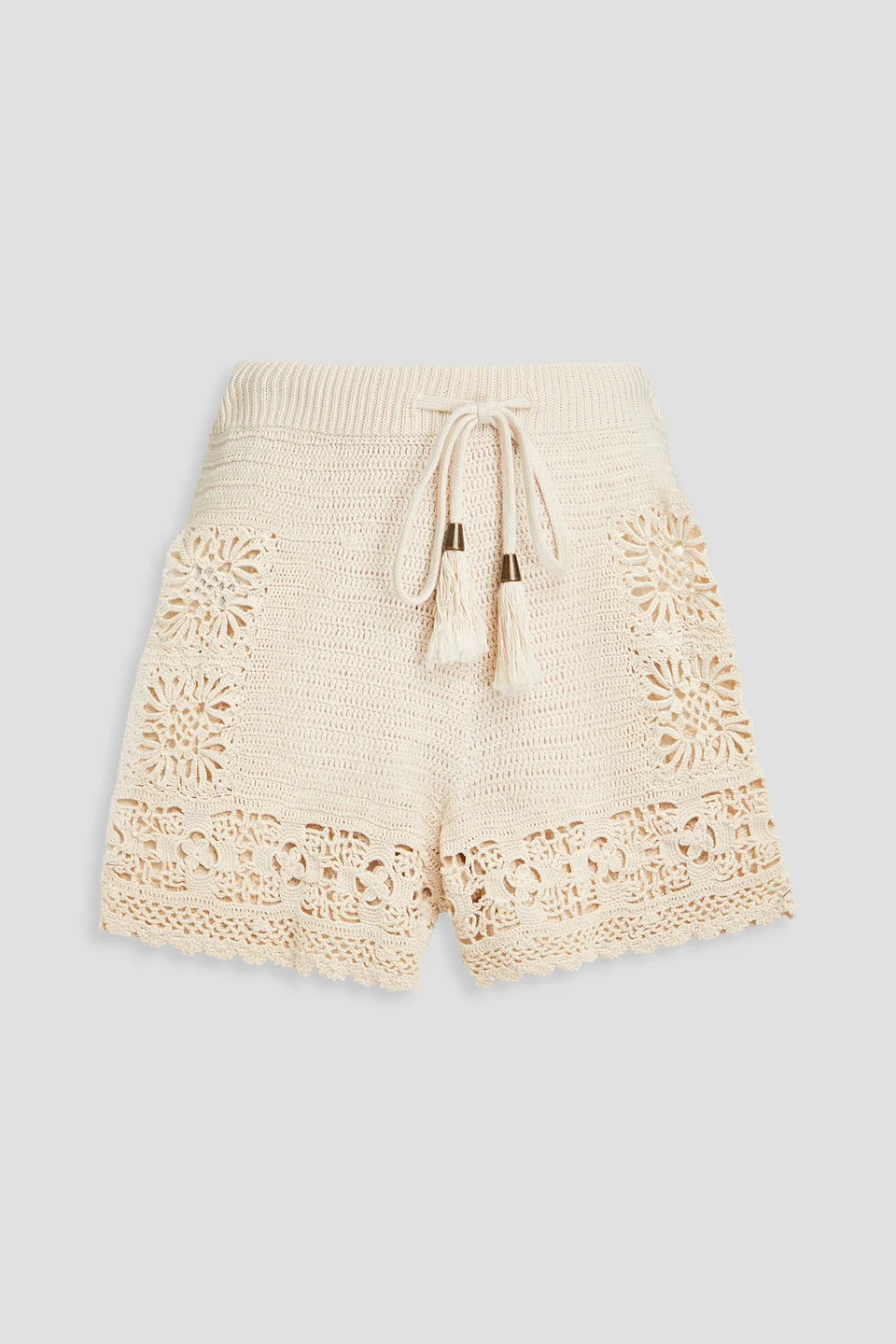 Shorts crocheted cotton elasticated drawstring waist high-rise cut mid-weight knit hand wash or dry clean imported You can style Zimmermann’s shorts in so many ways, like over a bikini or with a simple tank. Made from crocheted cotton, they have a drawstring waist for a comfy fit. 100% Cotton Product Code 1647597346855926