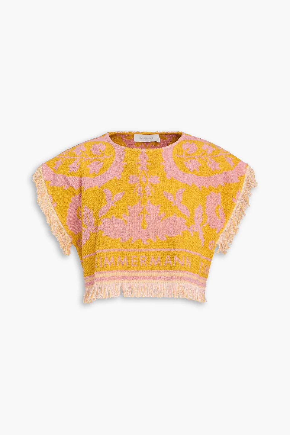 Top printed cotton-terry fringed cropped slips on mid-weight, non-stretchy fabric hand wash imported Have a vacation planned? You'll want to add Zimmermann's top to your packing list. This cropped style is made from printed cotton-terry with playful fringed trims. We like it with drawstring shorts or thrown over your bikini. 100% Cotton Product Code 46376663163055054