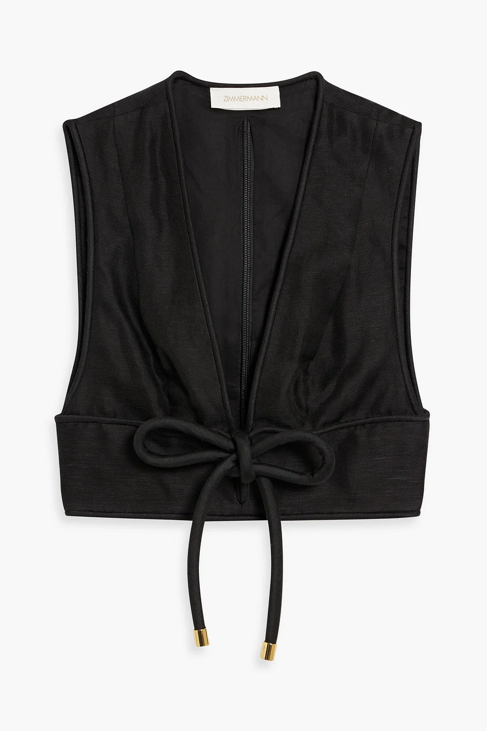 Top linen and silk-blend cropped bow-detailed concealed zip fastening along back fully lined mid-weight, non-stretchy fabric dry clean imported 52% Linen 48% Silk Product Code 1647597357616335