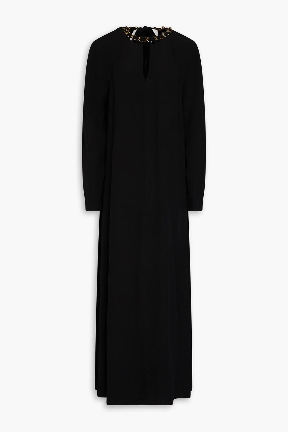 Dress crepe chain trims cutout tie-fastening keyhole at back concealed zip fastening along back mid-weight, non-stretchy fabric dry clean imported Shopping for a new black dress? Zimmermann's maxi style is made from crepe with eye-catching cutouts and chain trims that feel so luxe. We like it with tonal heels and full glam. 100% Viscose Product Code 1647597356314298
