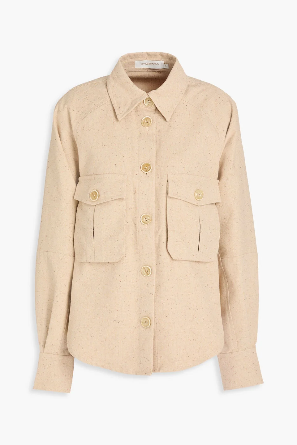 Shirt jacket donegal cotton and silk-blend buttoned cuffs breast pockets button fastenings through front curved hem mid-weight, non-stretchy fabric dry clean matching skirt also available imported 95% Cotton 5% Silk Product Code 46376663162932805