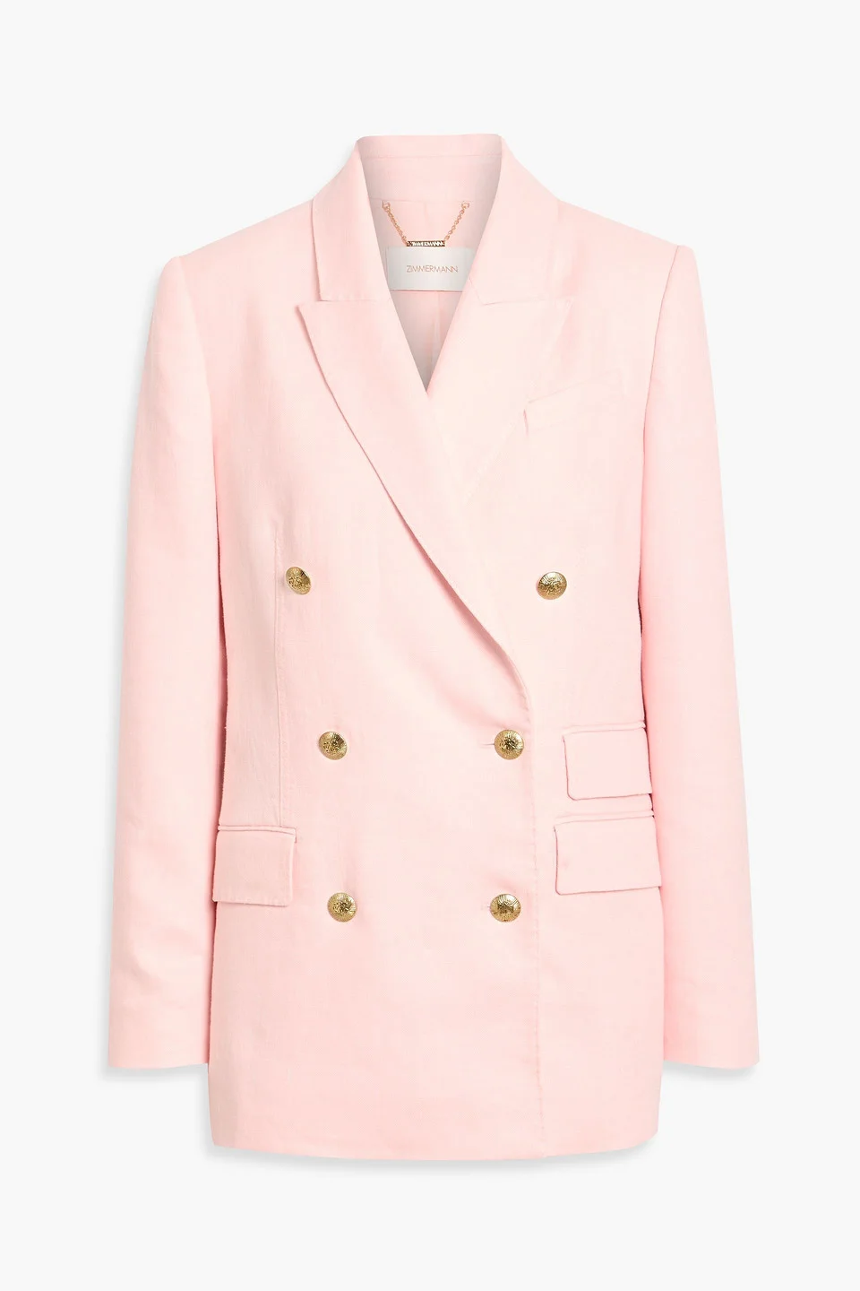 Blazer linen buttoned cuffs breast pocket front flap pockets button fastenings through double-breasted front fully lined dual back vents mid-weight, non-stretchy fabric dry clean imported 100% Linen Product Code 46376663163051316