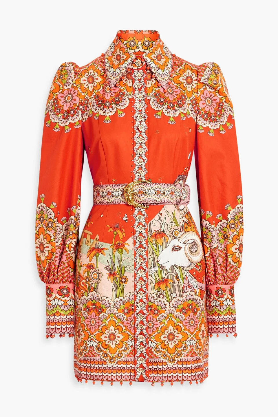 Dress printed cotton and silk-blend beaded fringe studded detachable belt two side slit pockets button fastenings through front fully lined mid-weight, non-stretchy fabric dry clean imported Looking for a really great mini dress? Made from a soft cotton and silk-blend, this vibrant orange beauty features beaded fringe and a detachable belt. Wear it with heels and a mini bag for your next night out with the girls. 70% Cotton 30% Silk Product Code 1647597320309767