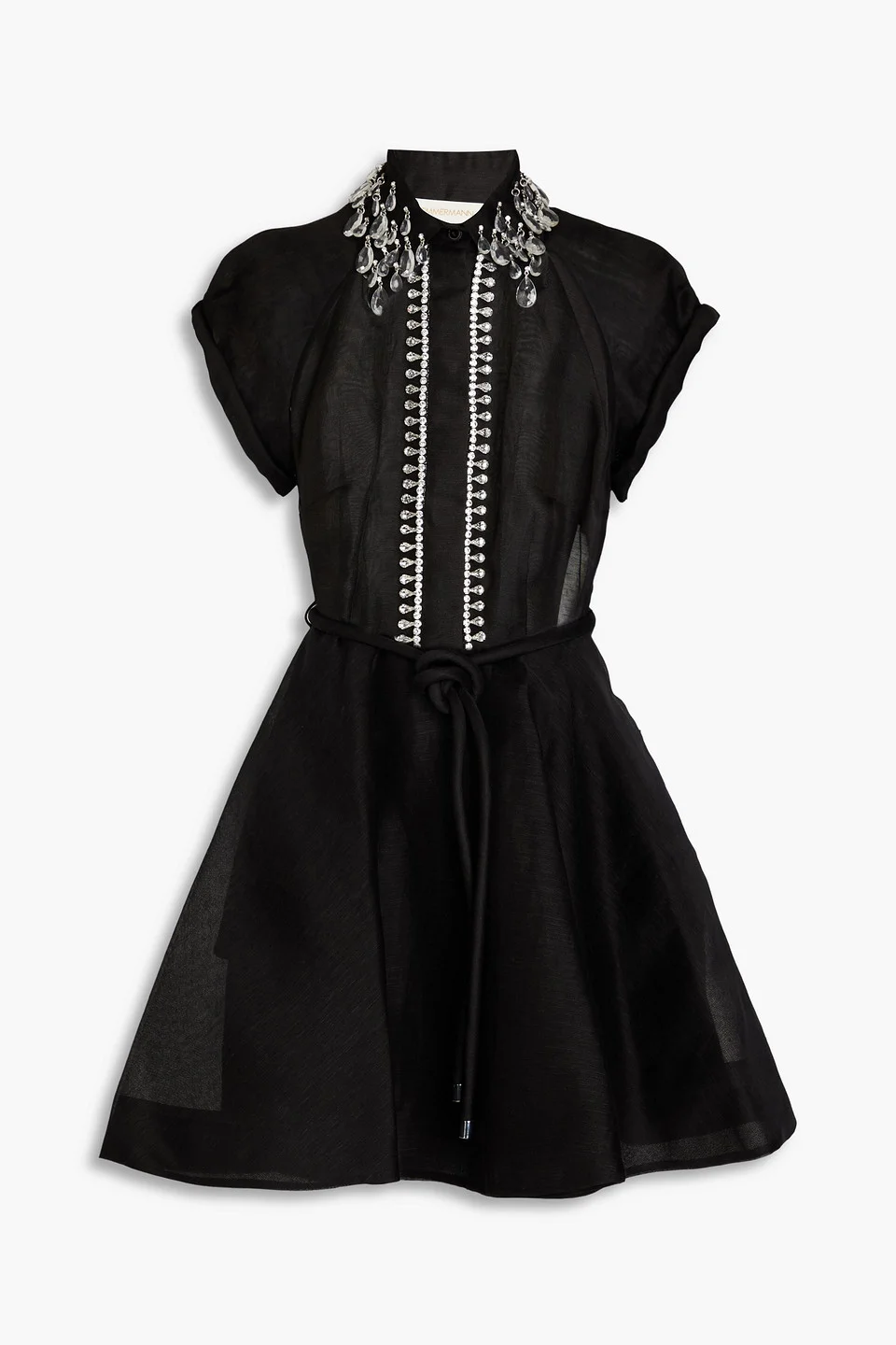 Dress gauze linen and silk-blend crystals detachable waist tie two side slit pockets flared hem partially concealed button fastenings along front concealed zip fastening along side partially lined lightweight, non-stretchy fabric dry clean imported Zimmermann’s mini dress feels flirty and fabulous, exactly the vibe we're after for date night and dinners with the girls. It's made from a linen and silk-blend, with a flared hem and sparkling crystal embellishments. 52% Linen 48% Silk Product Code 1647597356671798