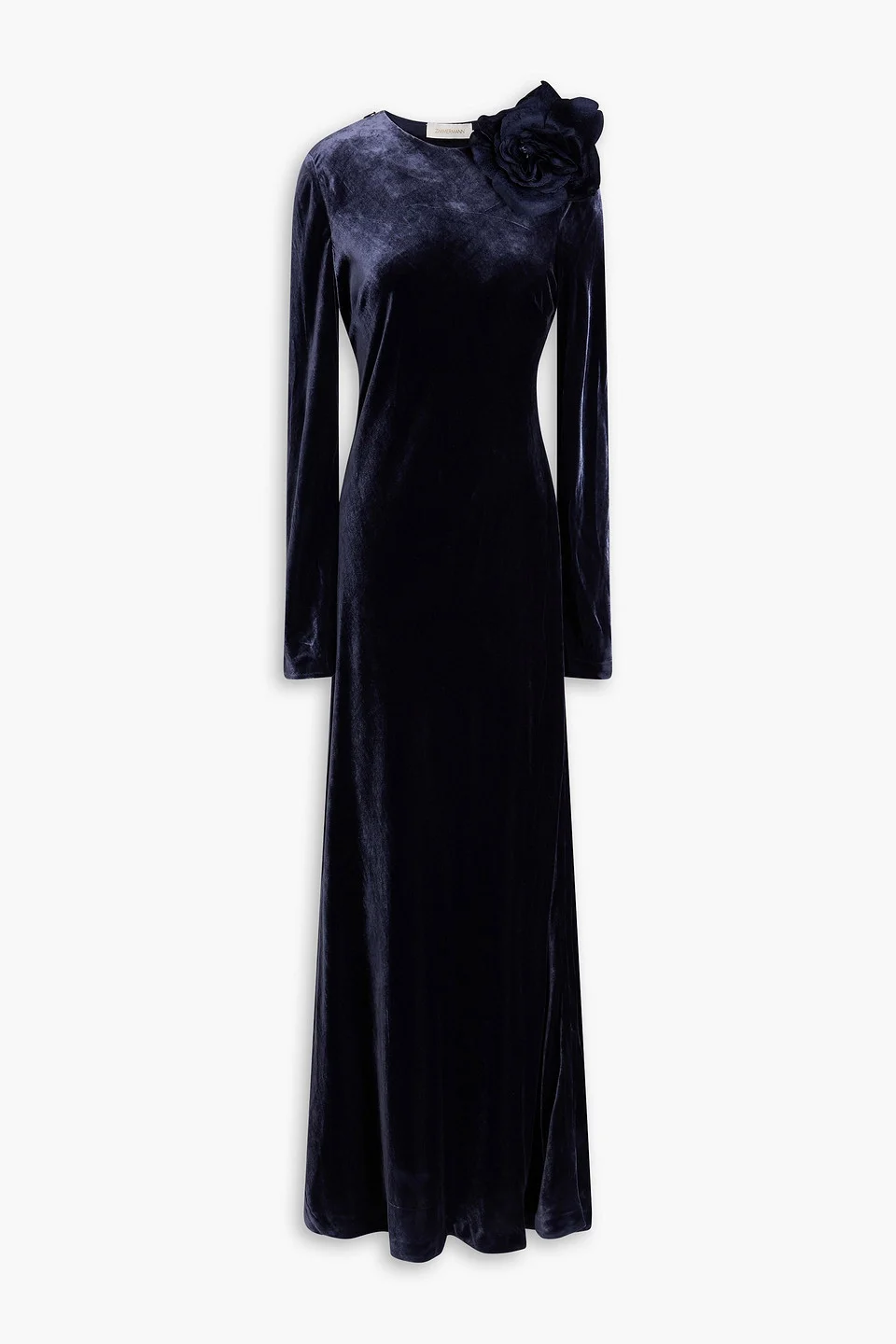 Dress velvet floral appliques concealed zip fastening along shoulder mid-weight, non-stretchy fabric dry clean imported 82% Viscose 18% Silk Product Code 46376663163006852