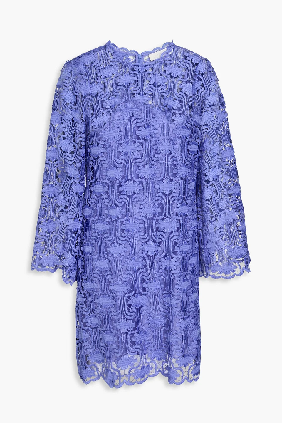 Dress guipure lace bell sleeves concealed zip fastening along back detachable slip to line mid-weight, non-stretchy fabric dry clean imported Zimmermann’s mini dress is made from pretty ‘Cornflower’ guipure lace. It has a slim tunic shape and cropped sleeves – great for showing off a special stack of bracelets. Add heels or flats, depending on your destination. 100% Polyester Product Code 46376663163062494