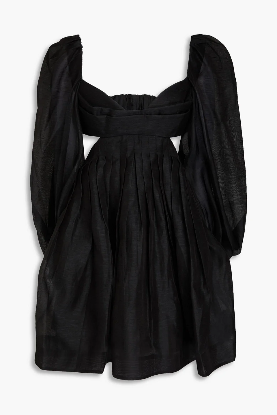 Dress linen and silk-blend cutout bow-detailed puffed sleeves zipped cuffs concealed hook fastenings along back concealed hook and zip fastening at back partially lined mid-weight, non-stretchy fabric dry clean imported 53% Linen 47% Silk Product Code 46376663162890689