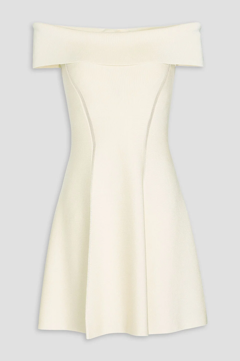 Off-the-shoulder dress stretch-knit pointelle trims slips on mid-weight knit dry clean imported Get ready to turn heads in Zimmermann’s off-the-shoulder mini dress. Made from a soft stretch-knit with delicate pointelle trims, it hugs your silhouette in all the right places. Wear it with strappy sandals and a clutch for summery date nights. 74% Viscose 24% Polyamide 2% Elastane Product Code 1647597358963734