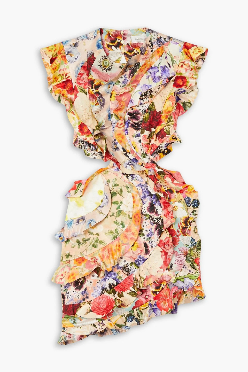 Open-back ruffled floral-print linen and silk-blend mini dress
