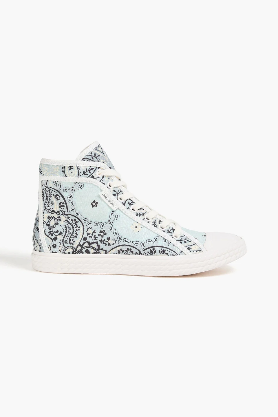 High-top sneakers paisley-print canvas logo-appliqued round toe lace-up front rubber sole imported Step out in style with Zimmermann’s high-top sneakers. They're made from linen with a vibrant paisley-print that adds a playful touch to any look. 100% Linen Product Code 1647597356871978